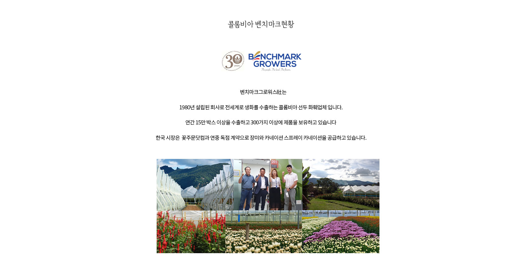 인사말 회사 연혁 플로플로소개 회원사 현황 콜롬비아현황
